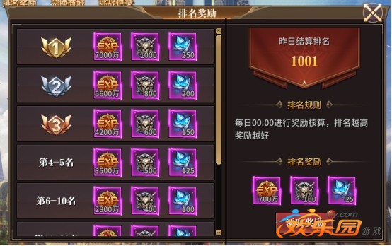 每个玩家每日可领取一次排名奖励。排名越高的,奖励自然越多!