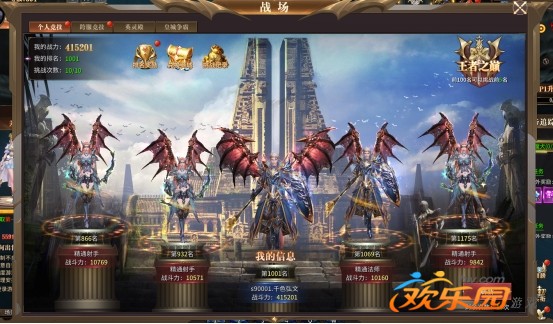 中间站台为您自己的排名和战斗力。