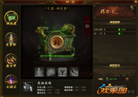 1. 共鸣碎片4种神器等级都达成条件才能激活;
